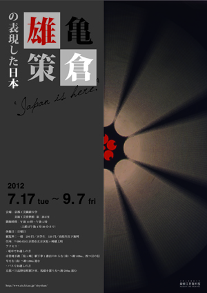 亀倉が活躍した戦後の日本は、敗戦から復興を果たした日本を欧米にアピールする東京オリンピックや大阪万博博覧会などの国際的な行事が多くあった。亀倉は欧米が求めるエキゾティックな日本のイメージではなく、彼自身が考える日本らしさをグラフィックデザインのなかで表現しようとした。日本古来の色彩感覚や日本庭園、工芸品や紋章などから着想を得てそれらの要素を分解し、亀倉的に再構築され洗練されたデザインが生まれた。今回の展覧会ではそのような亀倉雄策が日本を世界にアピールするためにつくったポスターを集めた。
